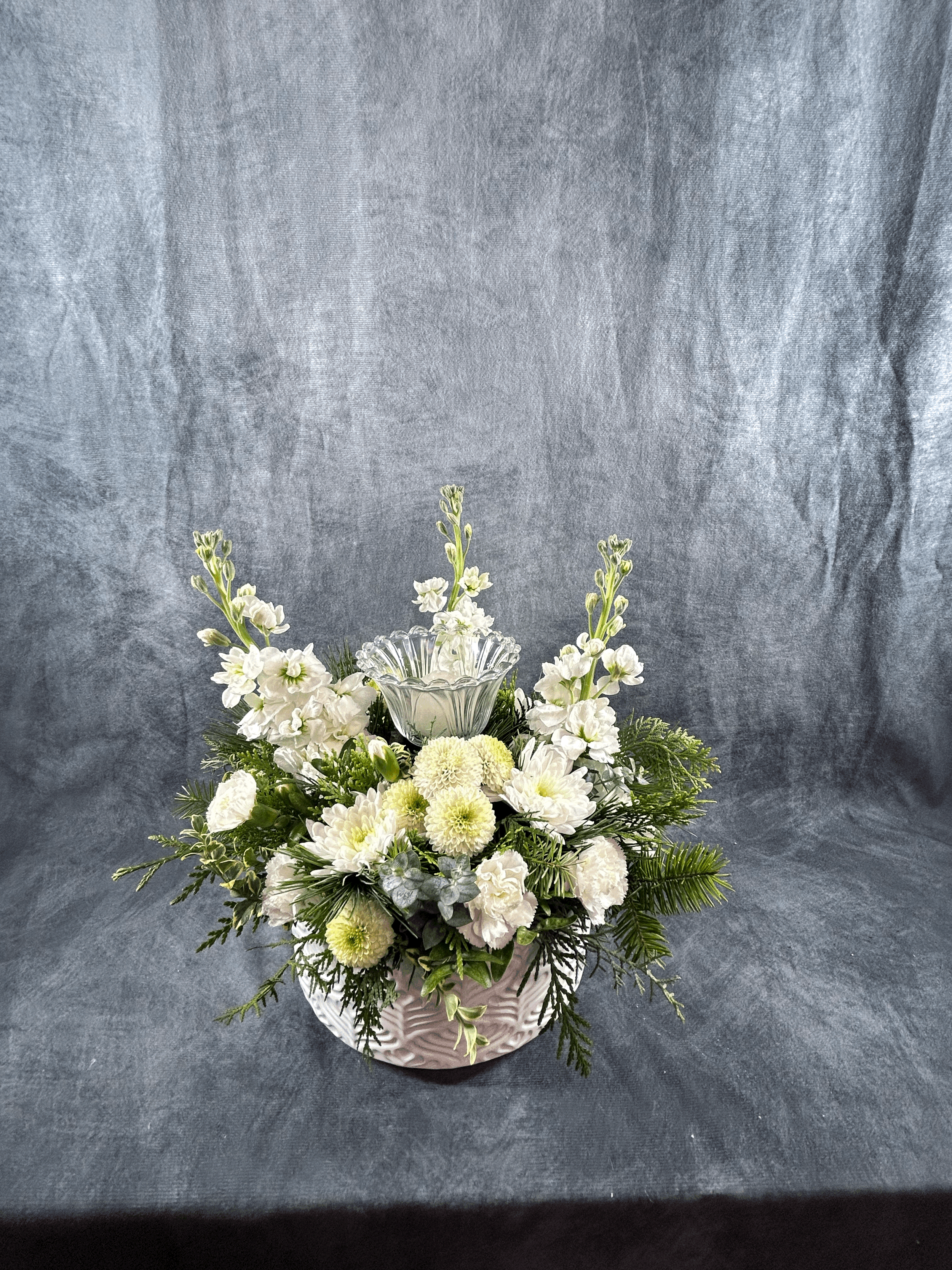 Please note designs are created as close to possible as the picture, they are custom made and may not look exactly like the picture. We may need to substitute specific flowers for one of a similar style and value based on what is available and in season at the time. It also may not always be possible to use the exact vase/container pictured, we may need to replace it with a suitable alternative. We will always do our best to insure your floral purchase or gift, will be one to remember!